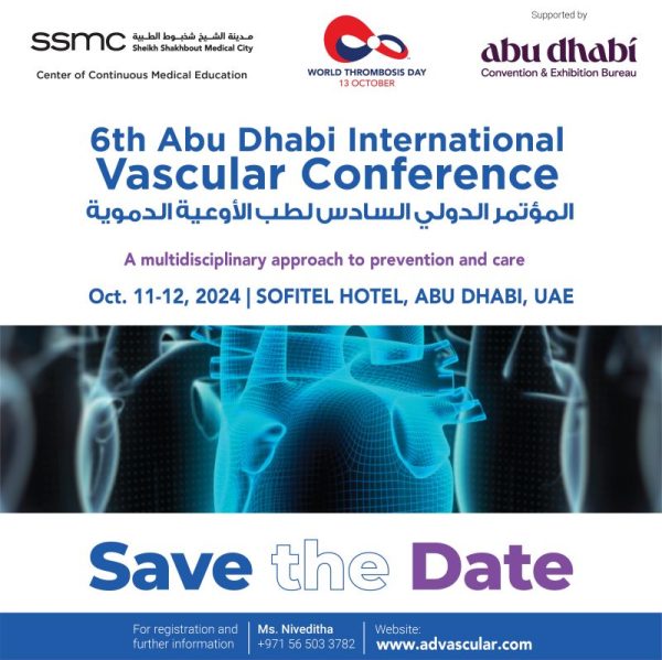 It is with great excitement that we extend to you an invitation to the 6th Abu Dhabi International Vascular Conference, taking place on October 11th and 12th, 2024, at the Sofitel Hotel, Abu Dhabi, UAE.